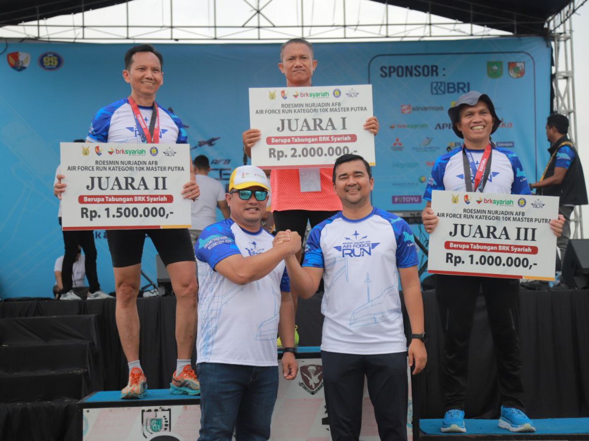 Dalam kesempatan itu, Kadispora Riau Boby Rachmat juga berkesempatan untuk mengalungkan medali dan secara simbolis memberikan hadiah kepada pemenang. Menurut Boby, ivent Air Force Run 2023 merupakan salah satu upaya memasyarakat olahraga lari di Riau dan berharap akan terus menjadi event tetap dari Lanud Roesmin Nurjadin Pekanbaru.